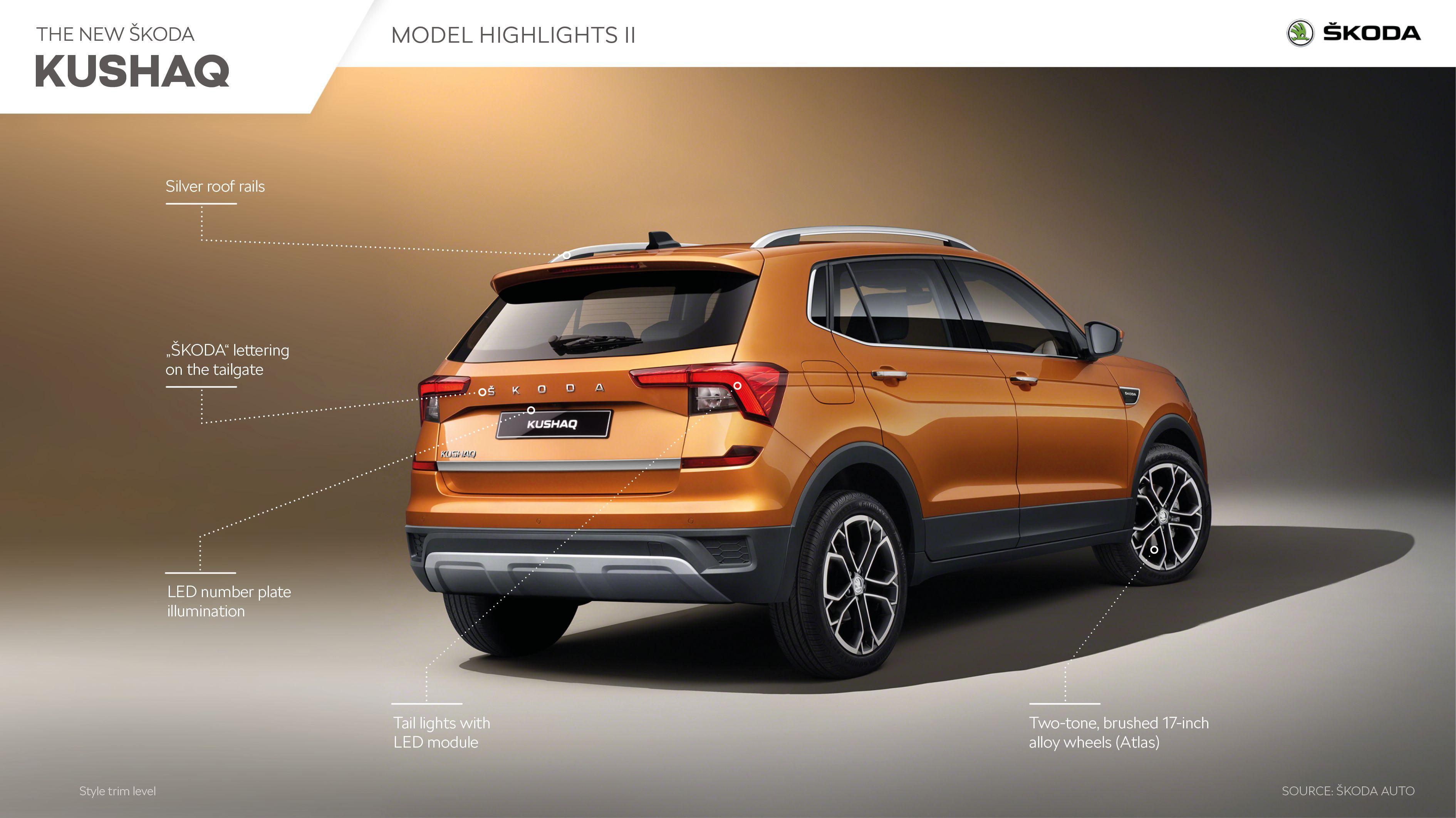 There's ESP and six airbags, as well as a slew of acronyms ranging from ABS to EBC to MSR to EDS to TCS and TPMS. This Style level also has automatic headlamps and wipers. We had high expectations for the appearance and feel, as well as the overall quality levels, of the Kushaq's interiors.